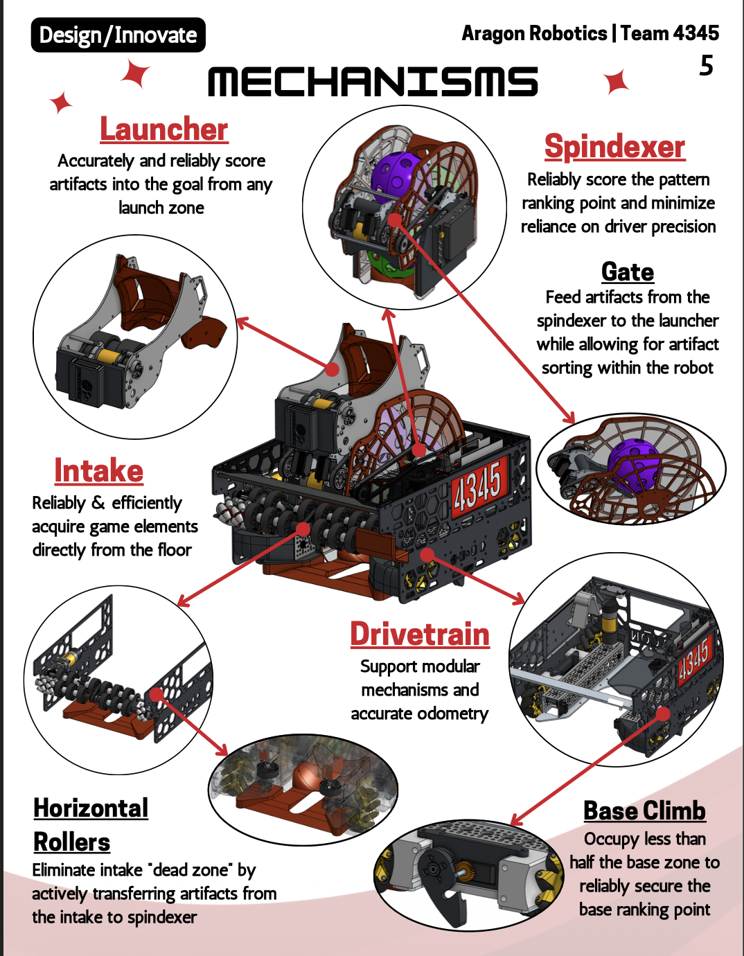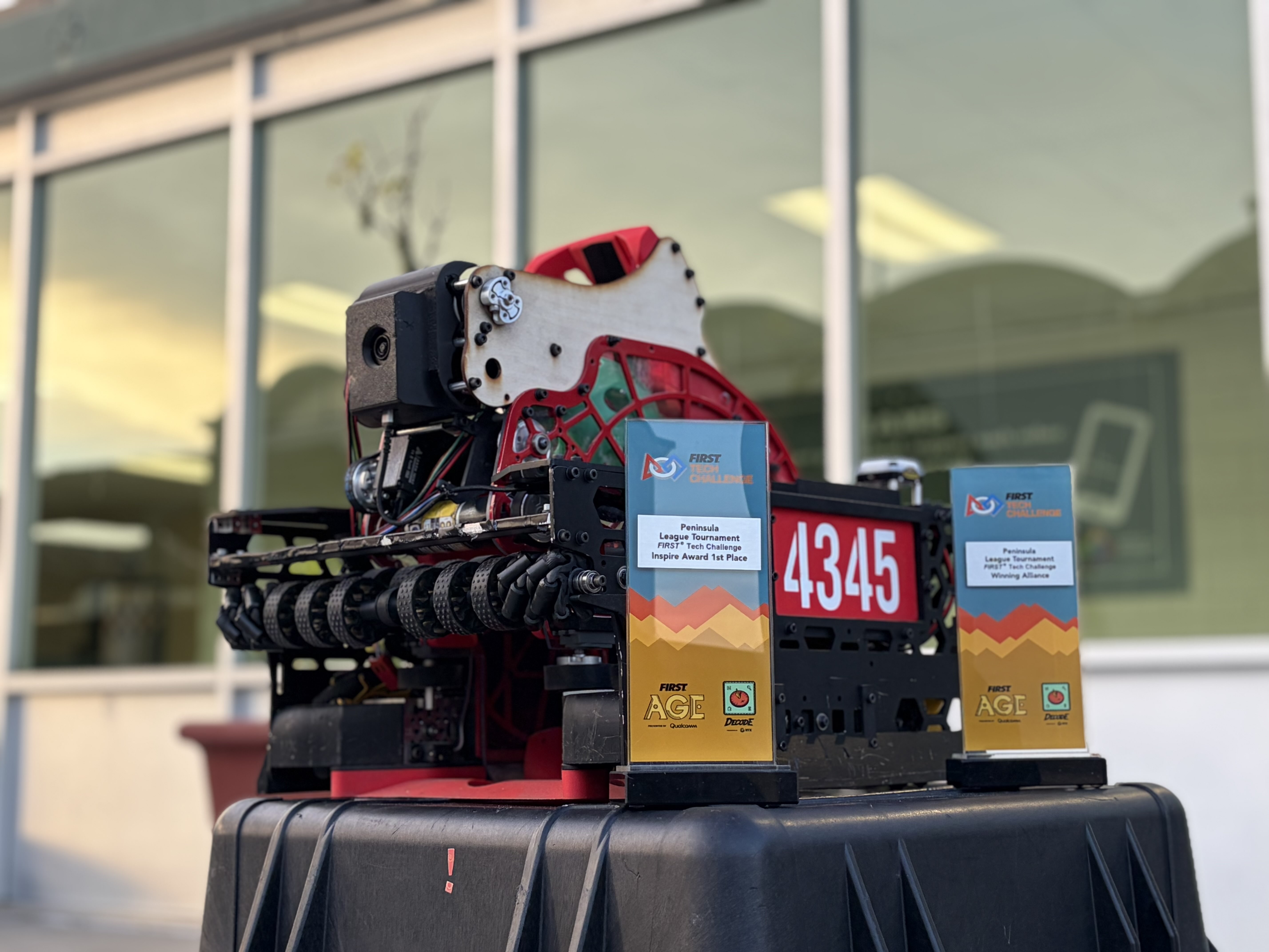 We’re a high school robotics team competing in the FIRST Tech Challenge, and this is our robot Gary — our fully custom-built competition robot! Gary can automatically pick up colored wiffle balls from the floor, sort them by color inside a spinning mechanism called a “spindexer,” and launch them into a goal across the field. The spindexer is the heart of the robot — it organizes the balls in the right order so they can be shot out in a specific color pattern to score bonus points. A dual flywheel launcher then fires them accurately from specific launch zones on the field. Every part of the robot was designed, built, and programmed entirely by our student team.